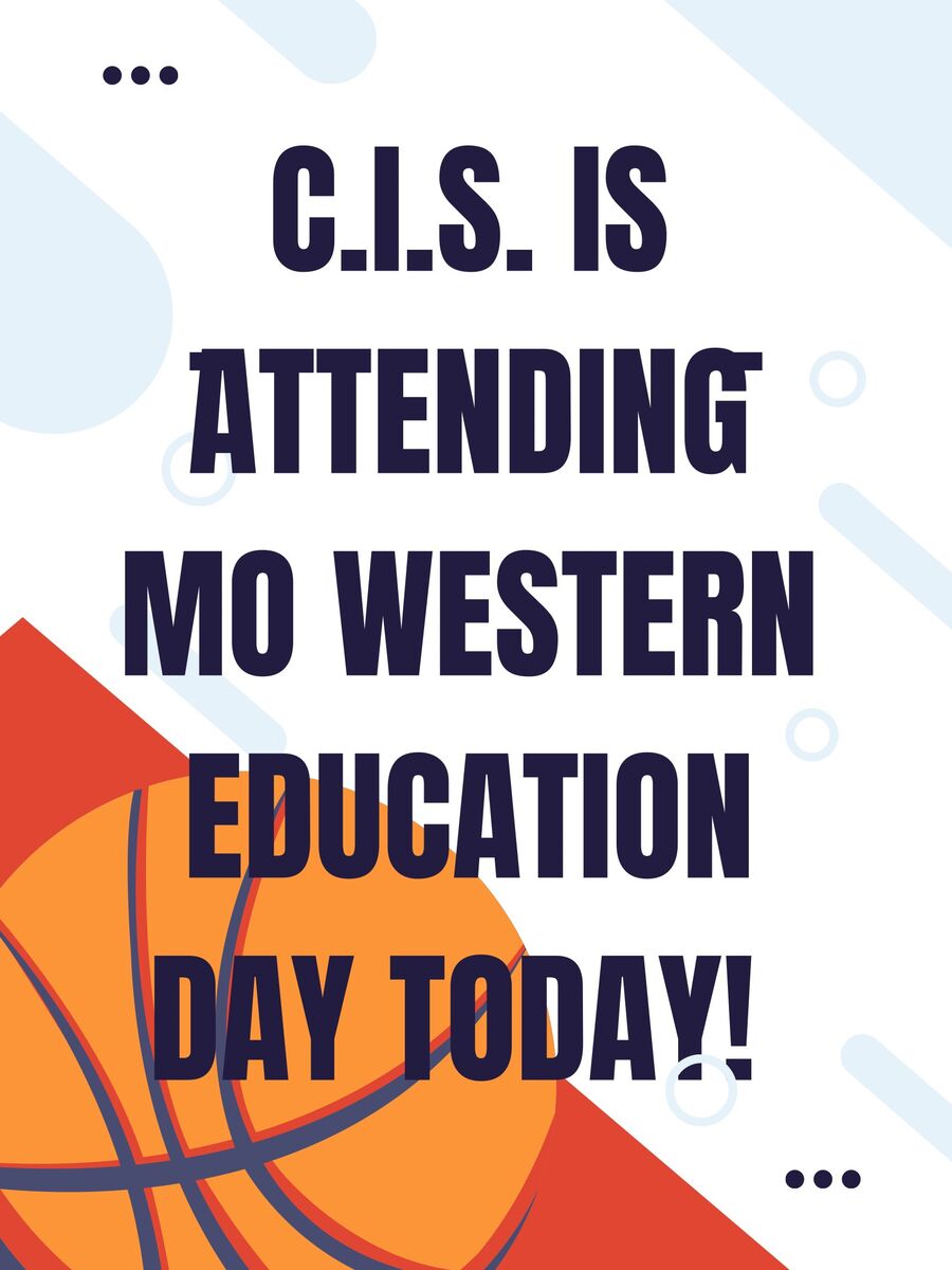 Reminder that today is the day C.I.S. students and staff will be attending the Missouri Western Education Day. This event is not open to the public. We will leave at 9:30 and return about 2:00.